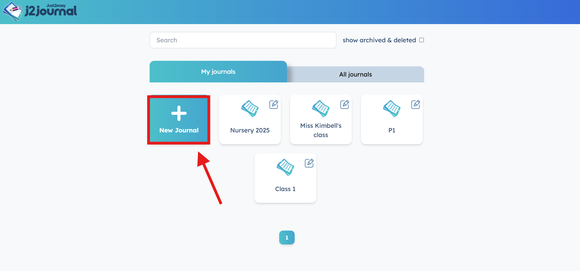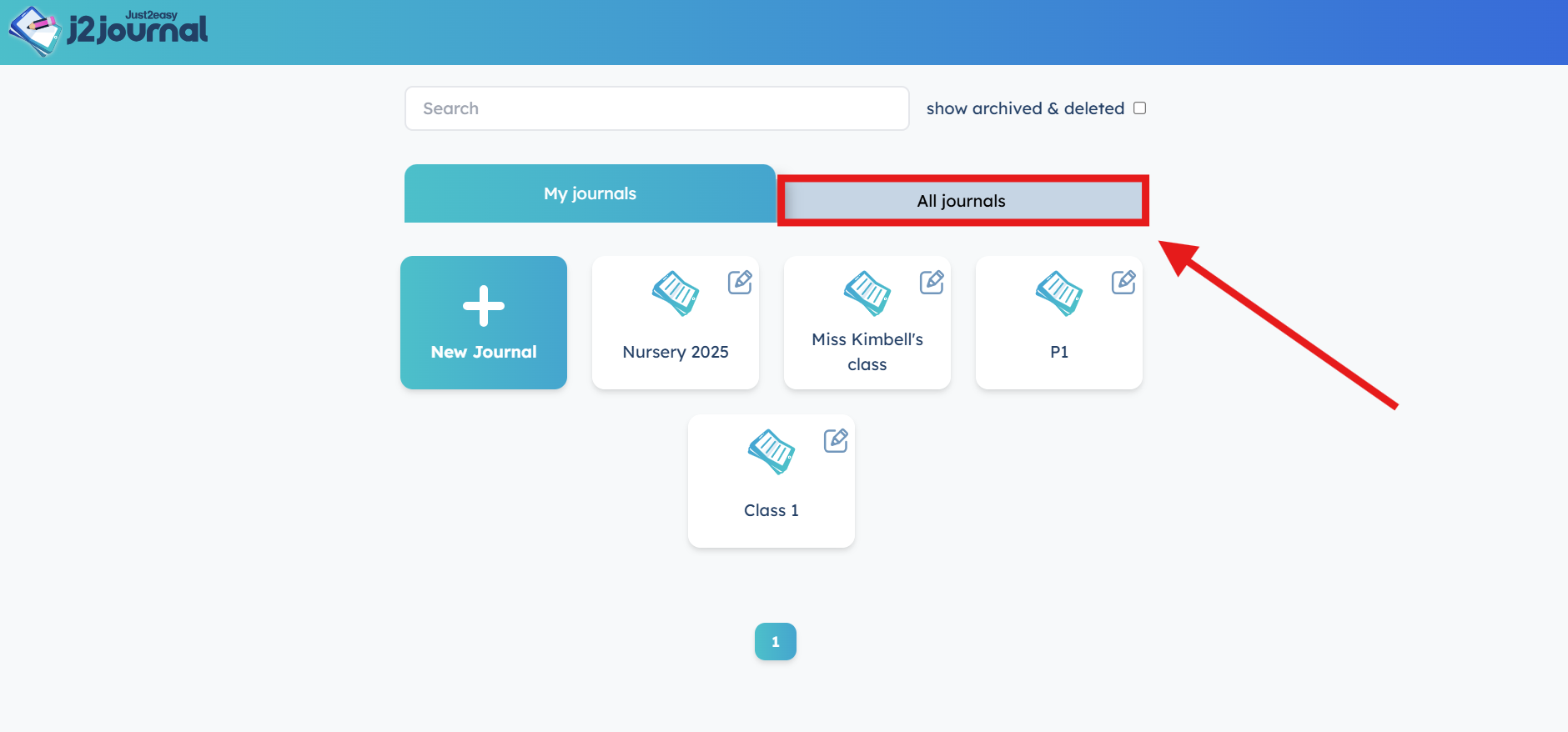 The journal will now be added into the "My Journals" section of your j2journal front screen. Teacher's can access other class journals via the "All journals" tab