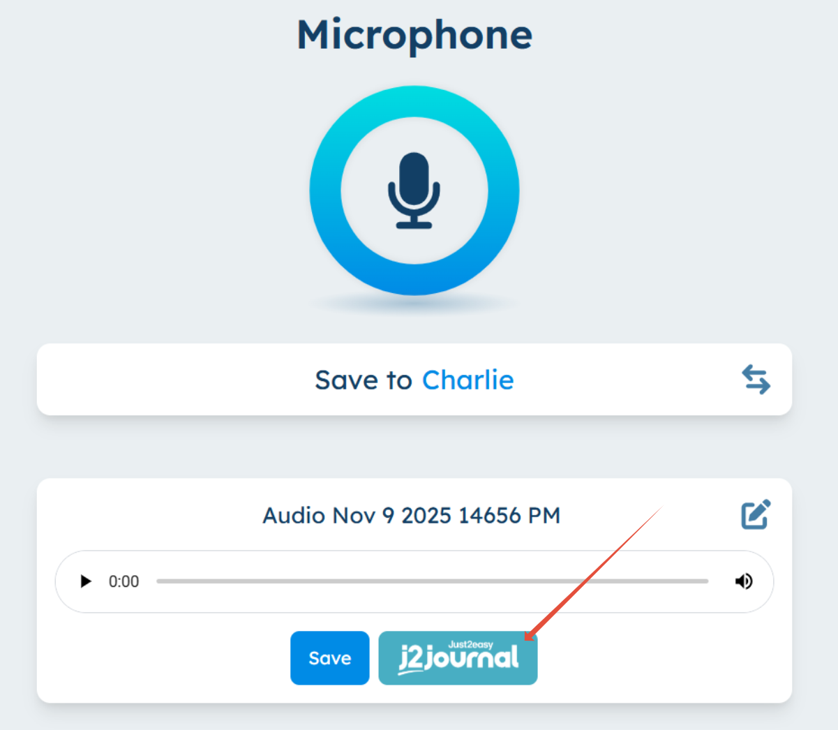 Record content as normal and then click on the j2journal button that will appear after recording.